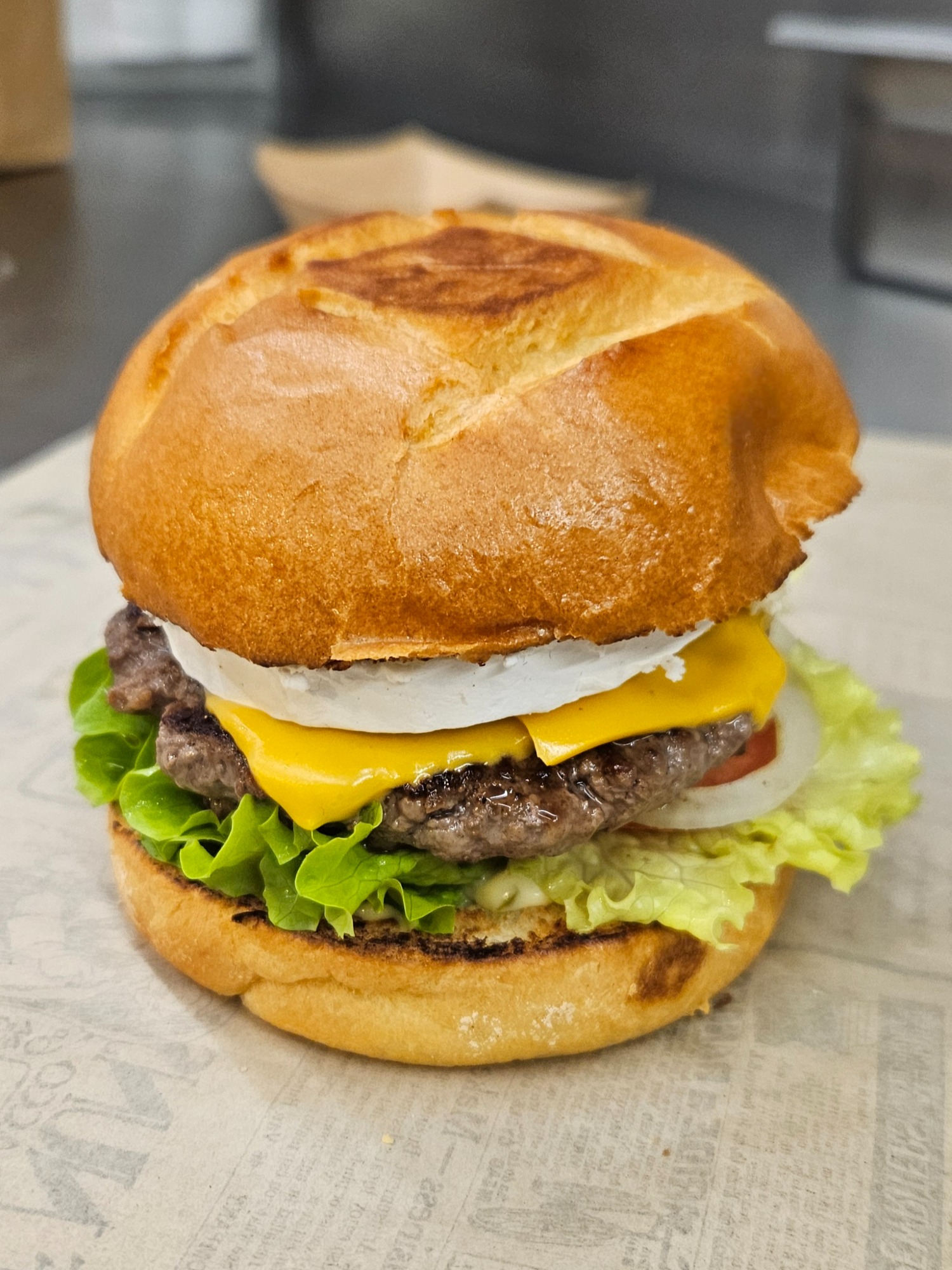 Découvrez nos burgers faits maison, préparés avec du pain brioché, une viande savoureuse et des ingrédients soigneusement sélectionnés.